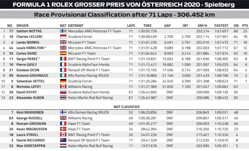 Wyniki Grand Prix Austrii 2020 Powrot Roberta Kubicy Do F1